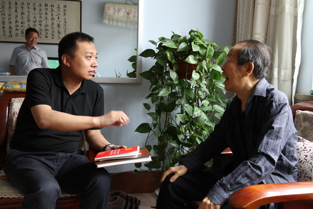 在离退休老党员家中,中心党支部书记宗心同志把“两学一做”书籍资料送到老党员们手中,郑重为老党员们佩戴了党徽,并介绍了近期中心工作和“两学一做”学习教育的开展情况,让他们及时吸收党的营养,增强修养,提升素质,更好地发挥党员的先锋模范作用。同时宗心书记还叮嘱老党员们有什么困难、建议要及时向党支部反映,感谢老党员们为中心发展所做出的贡献。