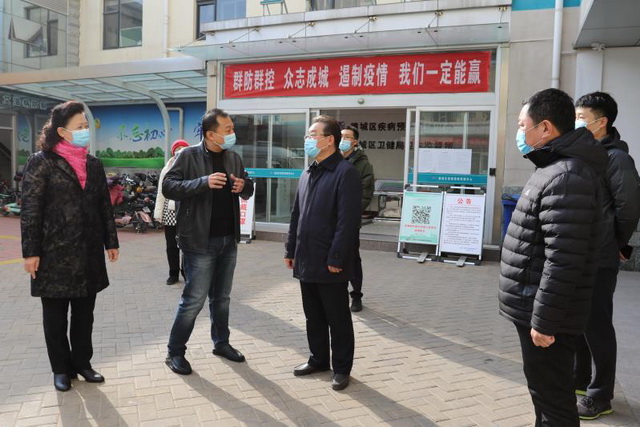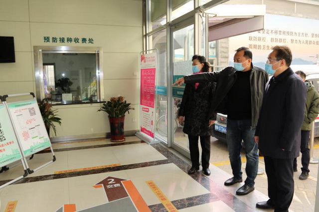 3月13日上午,德城区委直属机关工委书记商金路一行3人,到我中心调研督导基层党组织和党员在疫情防控一线作用发挥情况,区卫健局副局长孟庆荣,中心党总支书记、主任宗心,副书记、副主任王保山,区卫健局党办主任夏丰陪同。