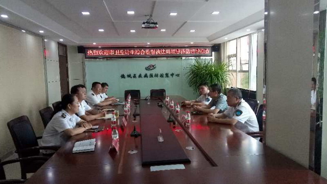 7月8日,市卫生计生综合监督执法局翟勇局长一行三人,来我区督导国家卫生城市复审迎检决战攻坚阶段工作。区卫生监督所所长宗心等陪同。