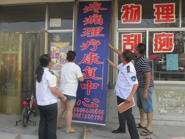根据市卫计委关于《德州市深入打击非法行医专项行动实施方案》的有关要求,近日,我所派出执法人员与基层卫生服务机构卫生监督协管员联合行动,以辖区内城乡结合部、乡镇街道为重点,全面摸排并开展了严厉打击无证、假证、假医、游医和打着传统医学、养生保健等旗号非法从事诊疗活动的行为。