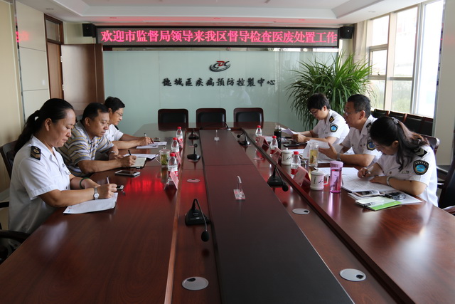近日,市卫生计生综合监督局一行三人在梁雪峰副局长的带领下,来我区就医疗废物处置专项整治工作情况进行督导检查,所长宗心、副所长孙敬中等陪同检查。