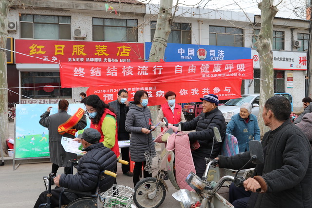 2021年3月24日是第26个“世界防治结核病日”,为遏制结核病流行,消除传染病的危害,保护人民生命安全和身体健康,3月26日,我中心以“世界防治结核病日”为契机,联合德城区卫健局、黄河涯卫生院及结防知识传播志愿者,深入到黄河涯镇开展健康教育宣传活动。
