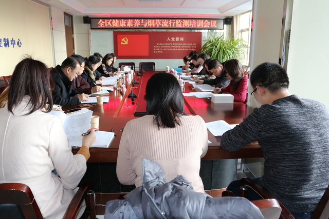 为落实我区健康素养和烟草使用监测任务,1月22日下午,我中心召开项目培训工作会议,会议邀请市健康教育所副所长李敏同志讲解项目入户要求,区卫计局副局长孟庆荣、宣教科科长马加富、中心副主任张世来及承担项目任务的三个街道卫计办、服务中心主要负责人和部分调查员参加。