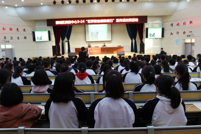 前期,在我中心专业人员的指导下,德州二中开展了形式多样的结核病、艾滋病等重点传染病健康教育宣传活动,包括开主题班会、办主题黑板报、课间播放“得了结核怎么办”“呼吸道传染病预防”“预防艾滋病”等动画视频资料、校园广播传染病防治知识等。21日,为提高学生们对重点传染病防治知识学习的积极性和主动性,学校组织高一、高二年级共60多个班级进行了艾滋病、结核病防治及卫生健康知识竞赛,并经过层层选拔,筛选出60名成绩优秀的同学给与奖励。22日,我中心专业人员深入学校开展了健康教育大课堂暨知识大赛颁奖仪式,通过生动有趣的视频动画和PPT的形式,用通俗的语言,生动的事例向同学们讲解了结核病的基本概念、传播途径、预防措施等知识。此次讲座采取视频教学方式,高二年级学生在现场参加活动,其它班级学生在教室观看视频直播。同时,“百千万结核病防治知识传播行动”志愿者向学生们发放了《学校结核病防治知识科普宣传十问十答》及《结核病防治核心信息》宣传小册子和折页,号召大家积极行动起来,传播结核病防治知识,共同参与到“遏制结核,健康校园”行动中。讲座结束后,我中心联合学校对在竞赛中的获奖的学生颁发了获奖证书和双肩背包、笔记本等奖品。