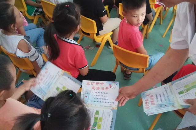 近日,我中心尉署社区卫生服务站工作人员到湖滨幼儿园开展“口腔健康全身健康”爱牙日主题公益活动,多方式普及口腔卫生知识:一是发放图文宣传资料,向全班同学传播口腔健康知识,让小朋友们了解保护牙齿和预防龋齿健康知识;二是播放宣传视频,使小朋友们更直观的看到保护牙齿的重要性及如何预防龋齿,如何正确刷牙,日常生活中应注意哪些事项等;三是检查小朋友的牙齿并做出相关指导,使小朋友们更加意识到保护牙齿的重要性。