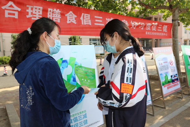 5月20日,我中心以“全民营养周”和“5.20”中国学生营养日为契机,在德州市第五中学组织在校师生,通过悬挂横幅、宣传展板、发放宣传资料等多种方式,向学生传播《中国居民膳食指南》核心信息。